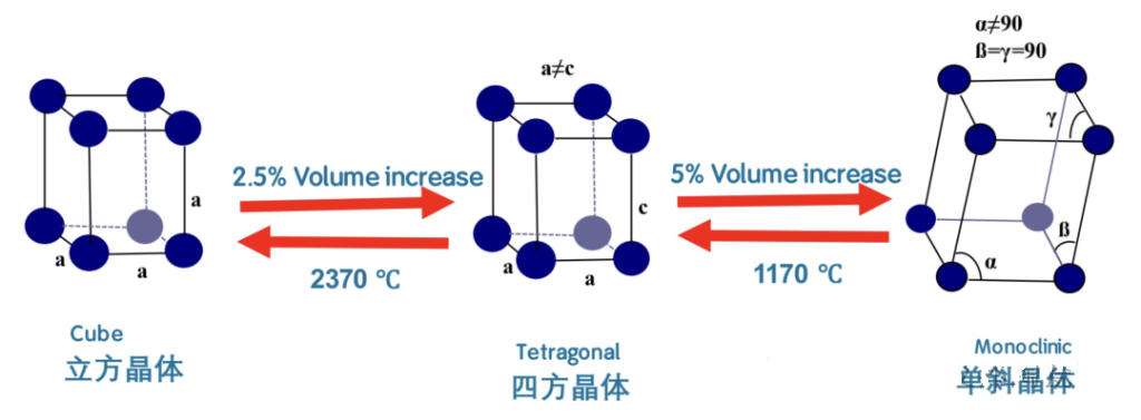 圖 氧化鋯晶體結(jié)構(gòu)及其相變,來源網(wǎng)絡
